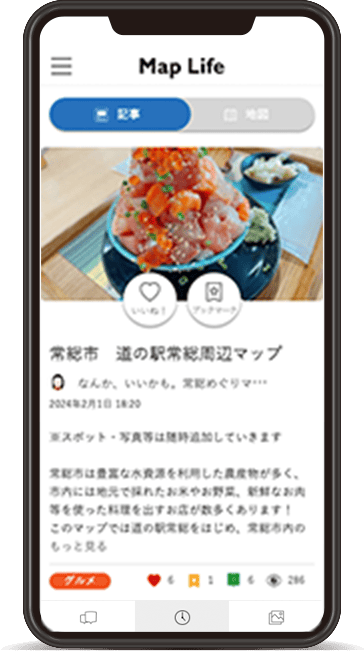 • 「Map Life」アプリが必要となるため、各ストア(AppStore、GooglePlay)からインストール(無料)してください。